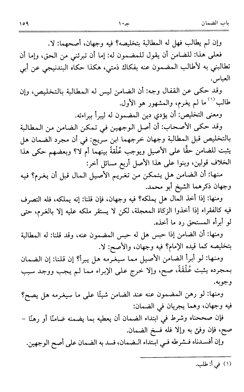 وقد حكى الأصحاب: أن أصل الوجهين في تمكن الضامن من المطالبة بالتخليص قبل المطالبة وجهان خرجهما ابن سريج: في أن مجرد الضمان هل يثبت للضامن حقًّا على الأصيل ويوجب عُلْقةً بينهما أم لا؟ وبعضهم حكى هذا الخلاف قولين، وبنوا على هذا الأصل أربع مسائل أخر: