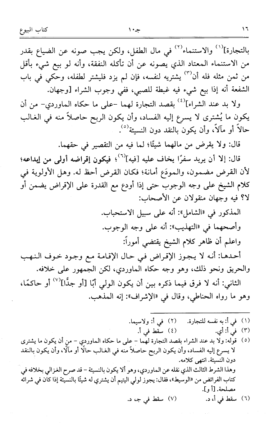 ولابد عند الشراء] بقصد التجارة لهما – على ما حكاه الماوردي – من أن يكون ما يُشترى لا يسرع إليه الفساد، وأن يكون الربح حاصلاً منه في الغالب حالاً أو مآلاً، وأن يكون بالنقد دون النسيئة.