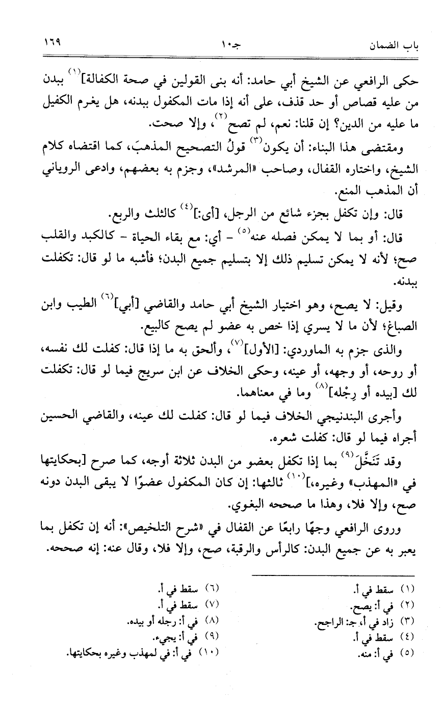 وروى الرافعي وجهاً رابعاً عن القفال في "شرح التلخيص": أنه إن تكفل بما يعبر به عن جميع البدن: كالرأس والرقبة، صح، وإلا فلا، وقال عنه: إنه صححه.