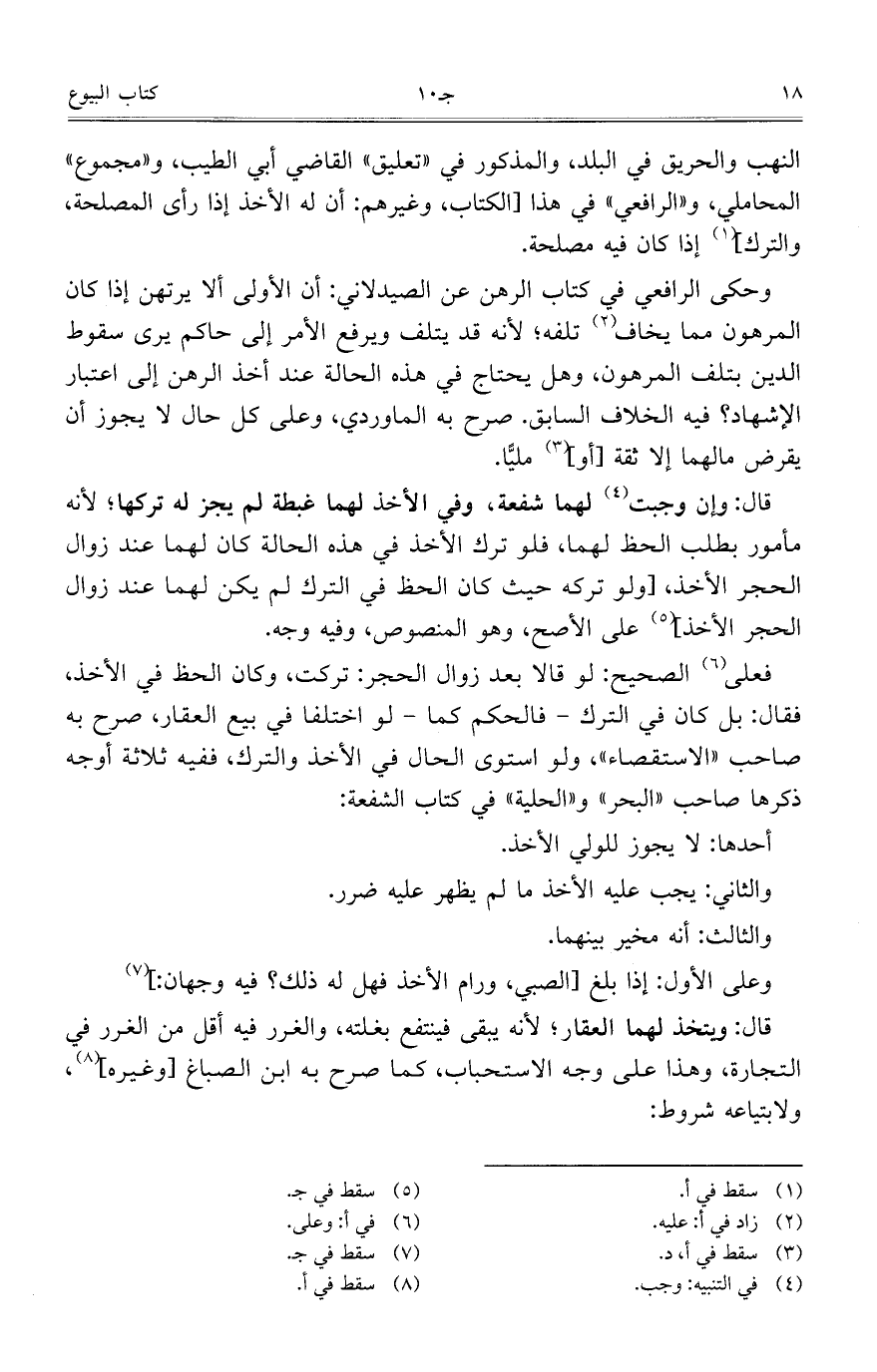 قال: وإن وجبت لهما شفعة، وفي الأخذ لهما غبطة لم يجز له تركها؛ لأنه مأمور بطلب الحظ لهما، فلو ترك الأخذ في هذه الحالة كان لهما عند زوال الحجر الأخذ، [ولو تركه حيث كان الحظ في الترك لم يكن لهما عند زوال الحجر الأخذ] على الأصح، وهو المنصوص، وفيه وجه.