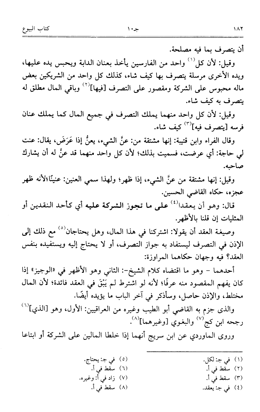 وقيل: لأن كل واحد من الفارسي يأخذ بعنان الدابة ويحبس يده عليها، ويده الأخرى مرسلة يتصرف بها كيف شاء، كذلك كل واحد من الشريكين بعض ماله محبوس على الشركة ومقصور على التصرف [فيها] وباقي المال مطلق له يتصرف به كيف شاء.