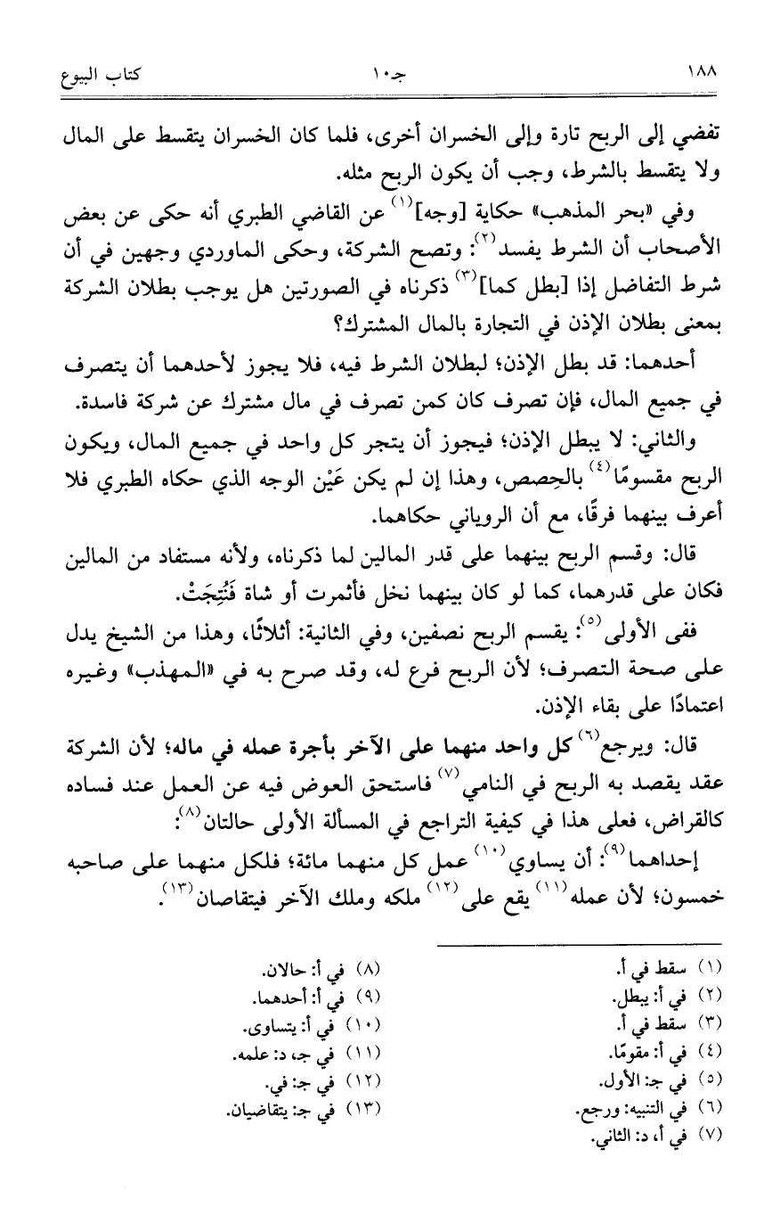 تفضي إلى الربح تارة وإلى الخسران أخرى، فلما كانالخسران يتقسط على المال ولا يتقسط بالشرط، وجب أن يكون الربح مثله.