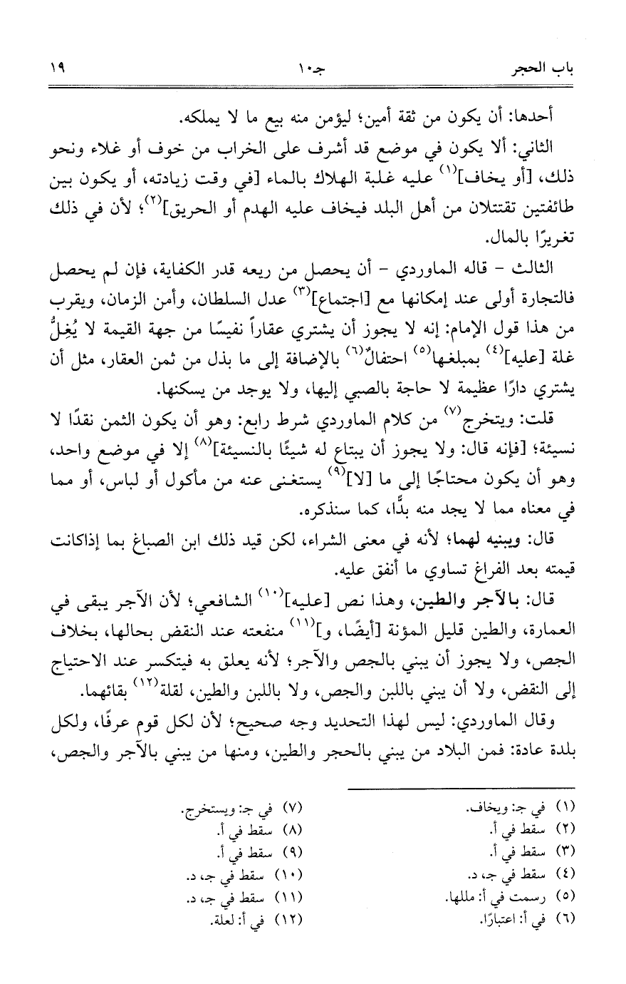 وقال الماوردي: ليس لهذا التحديد وجه صحيح؛ لأن لكل قوم عراً، ولكل بلدة عادة: فمن البلاد من يبني بالحجر والطين، ومنها من يبني بالآجر والجص،