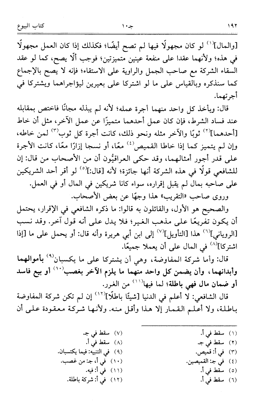 قال الشافعي: لا أعلم في الدنيا [شيئاً باطلاً] إن لم تكن شركة المفاوضة باطلة، ولا أعلم القمار إلا هذا وأقل منه. ولأنها شركة معقودة على أن