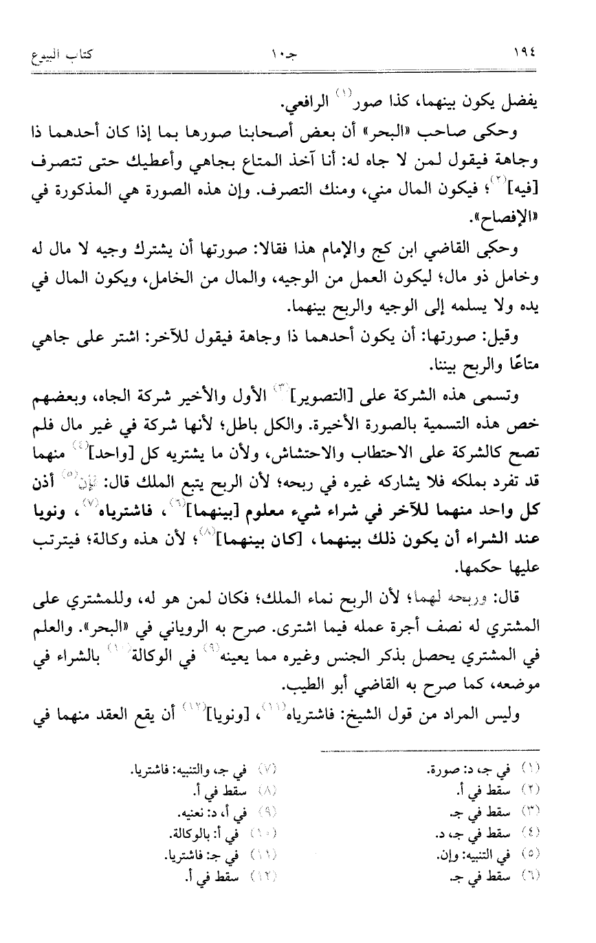 وتسمى هذه الشركة على [التصوير] الأول والأخير شركة الجاه، وبعضهم خص هذه التسمية بالصورة الأخيرة. والكل باطل؛ لأنها شركة في غير مال فلم تصح كالشركة على الاحتطاب والاحتشاش، ولأن ما يشتريه كل [واحد] منهما قد تفرد بملكه فلا يشاركه غيره في ربحه؛ لأن الربح يتبع الملك قال: فإن أذن كل واحد منهما للآخر في شراء شيء معلوم [بينهما]، فاشترياه، ونويا عند الشراء أن يكون ذلك بينهما، [كان بينهما]؛ لأن هذه وكالة؛ فيترتب عليها حكمها.