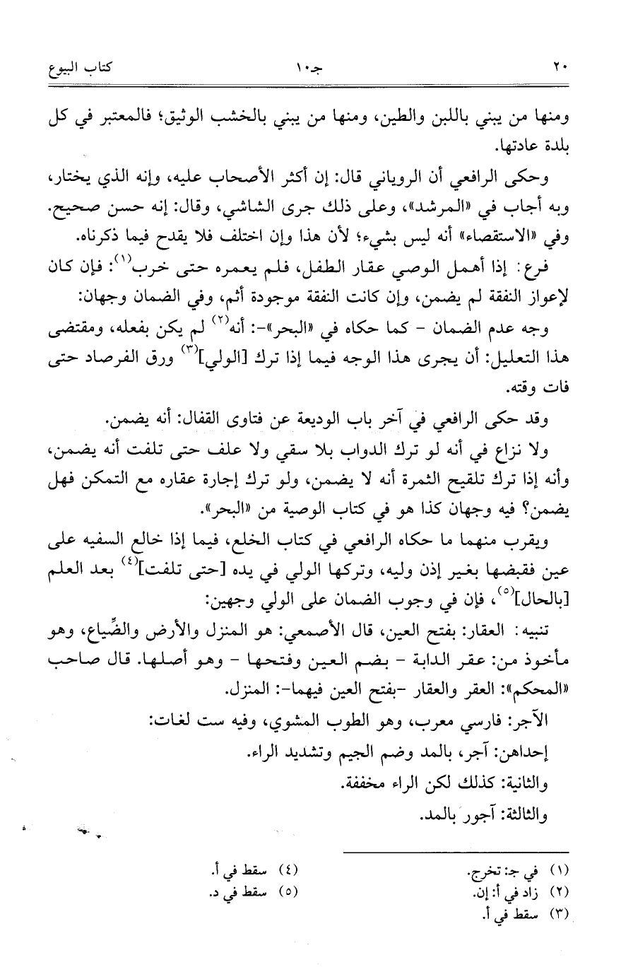 تنبيه: العقار: بفتح العين، قال الأصمعي: هو المنزل والأرض والضِّياع، وهو مأخوذ من: عقر الدابة – بضم العين وفتحها – وهو أصلها. قال صاحب "المحكم": العقر والعقار – بفتح العين فيهام -: المنزل.
