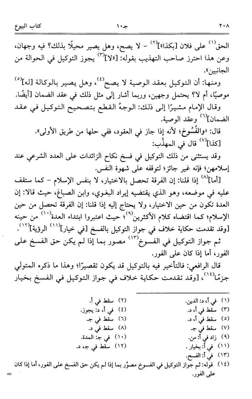 ثم جواز التوكيل في الفسوخ مصور بما إذا لم يكن حق الفسخ على الفور، أما إذا كان على الفور.