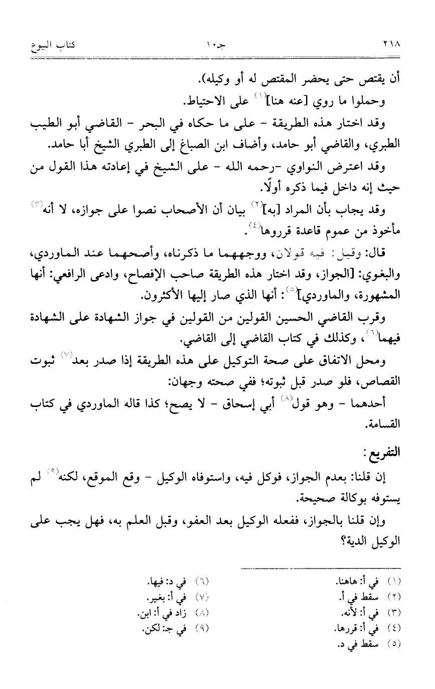 قال: وقيل: فيه قولان، ووجههما ما ذكرناه، واصحهما عند الماوردي، والبغوي: [الجواز، وقد اختار هذه الطريقة صاحب الإفصاح، وادعى الرافعي: أنها المشهورة، والماوردي]: أنها الذي صار إليها الأكثرون.