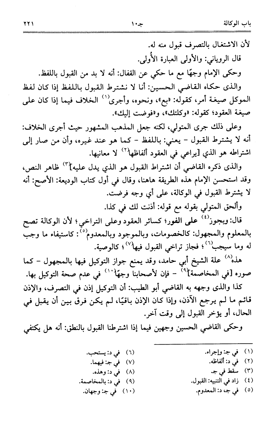قال: ويجوز على الفور؛ كسائر العقود وعلى التراخي؛ لان الوكالة تصح بالمعلوم والمجهول: كالخصومات، وبالموجود وبالمعدوم: كاستيفاء ما وجب له وما سيجب؛ فجاز تراخي القبول فيها؛ كالوصية.