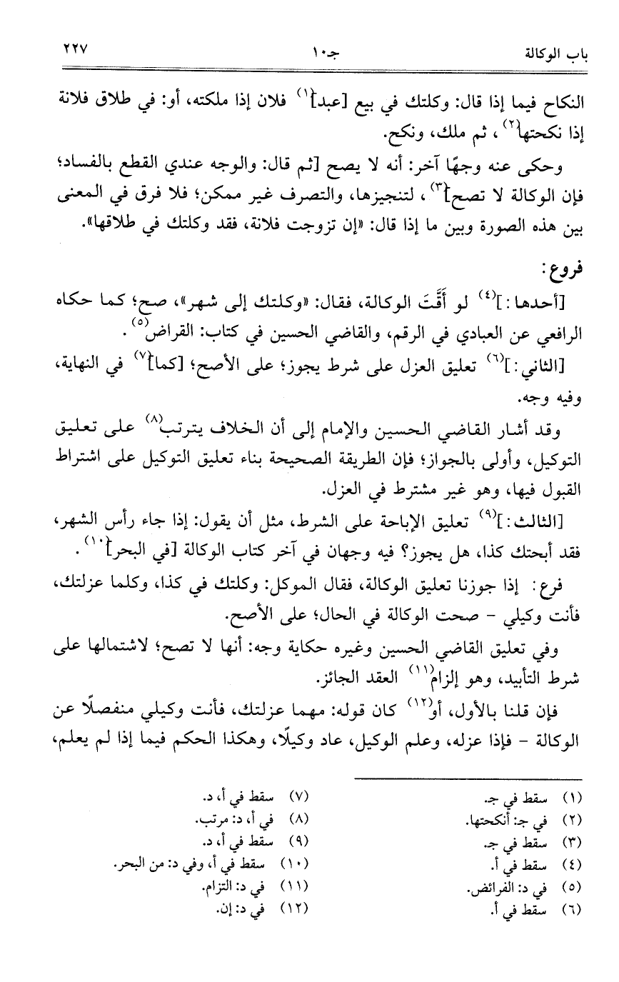 وحكى عنه وجهاً آخر: أنه لا يصح [ثم قال: والوجه عندي القطع بالفساد؛ فإن الوكالة لا تصح]، لتنجيزها، والتصرف غير ممكن؛ فلا فرق في المعنى بين هذه الصورة وبين ما إذا قال: "إن تزوجت فلانة، فقد وكلتك في طلاقاه".