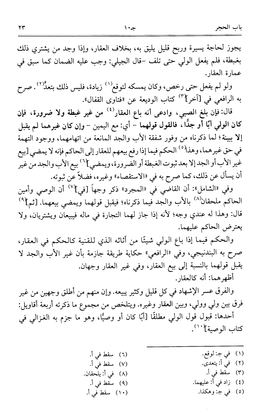 والفرق عسر الإشهاد في كل قليل وكثير يبيعه. وإن منهم من أطلق وجهين من غير فرق بين ولي وولي، وبين العقار وغيره. ويتلخص من مجموع ما ذكرته أربعة أقاويل: