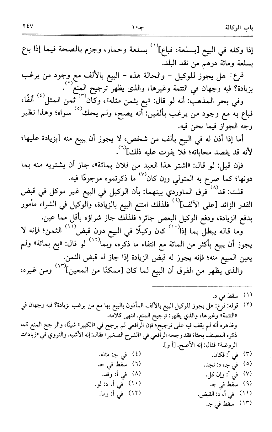 فرع: هل يجوز للوكيل – والحالة هذه – البيع بالألف مع وجود من يرغب بزيادة؟ فيه جهان في التتمةوغيرها، والذي يظهر ترجيح المنع.