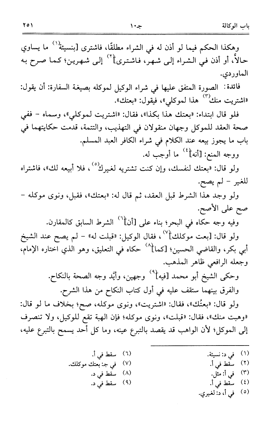 فائدة: الصورة المتفق عليها في شراء الوكيل لموكله بصيغة السفارة: أن يقول: "اشتريت منك هذا لموكلي"، فيقول: "بعتك".