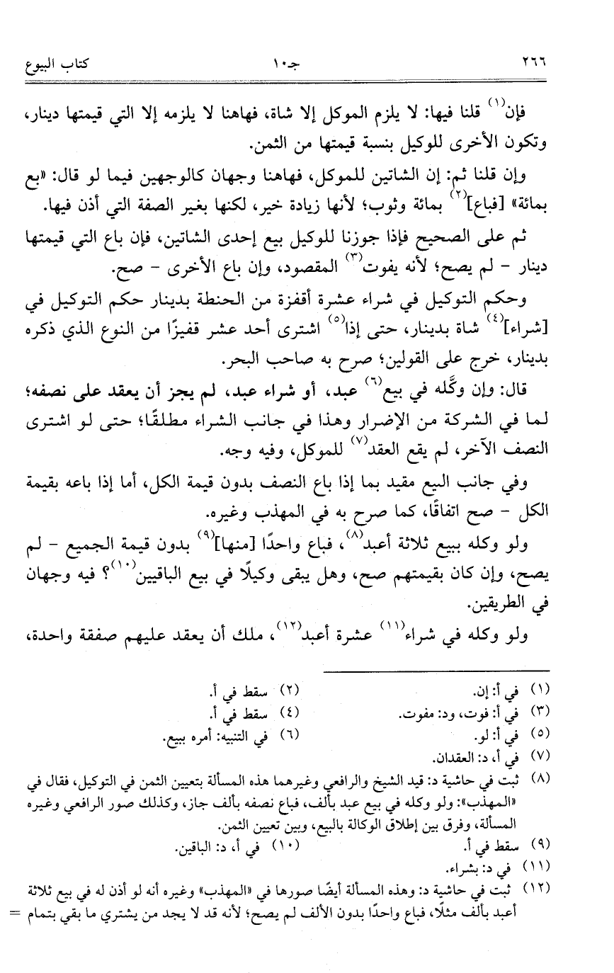 وحكم التوكيل في شراء عشرةأقفزة من الحنطة بدينار حكم التوكيل في [شراء] شاة بدينار، حتى إذا اشترى أحد عشر قفيزاً من النوع الذي ذكره بدينار، خرج على القولين؛ صرح به صاحب البحر.