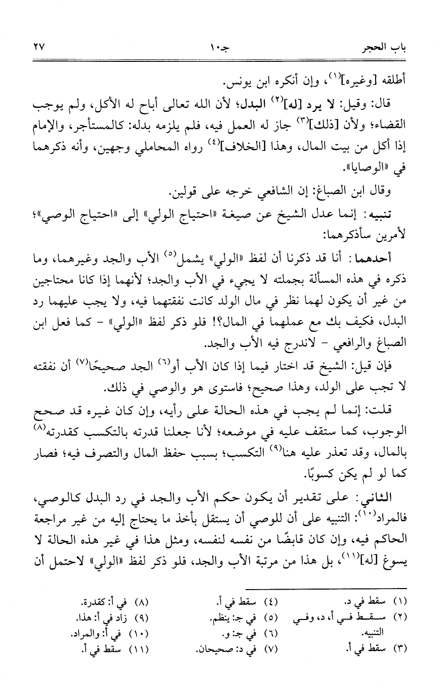 قلت: إنما لم يجب في هذه الحالة على رأيه، وإن كان غيره قد صحح الوجوب، كما ستقف عليه في موضعه؛ لأنا جعلنا قدرته بالتكسب كقدرته بالمال، وقد تعذر عليه هنا التكسب؛ بسبب حفظ المال والتصرف فيه؛ فصار كما لو لم يكن كسوباً.