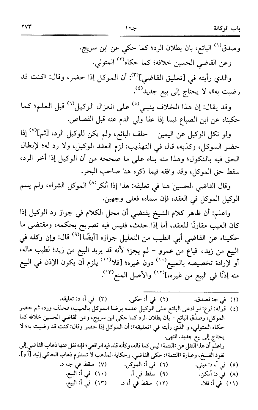 ولو نكل الوكيلعن اليمين – حلف البائع، ولم يكن للوكيل الرد، [ثم] إذا حضر الموكل، وكذبه، قال في التهذيب: لزم العقد الوكيل، ولا رد له؛ لإبطال الحق فيه بالنكول؛ وهذا منه بناء على ما صححه من أن الوكيل إذا أخر الرد، سقط حق الموكل، قود وافقه فيما ذكره هنا صاحب البحر.