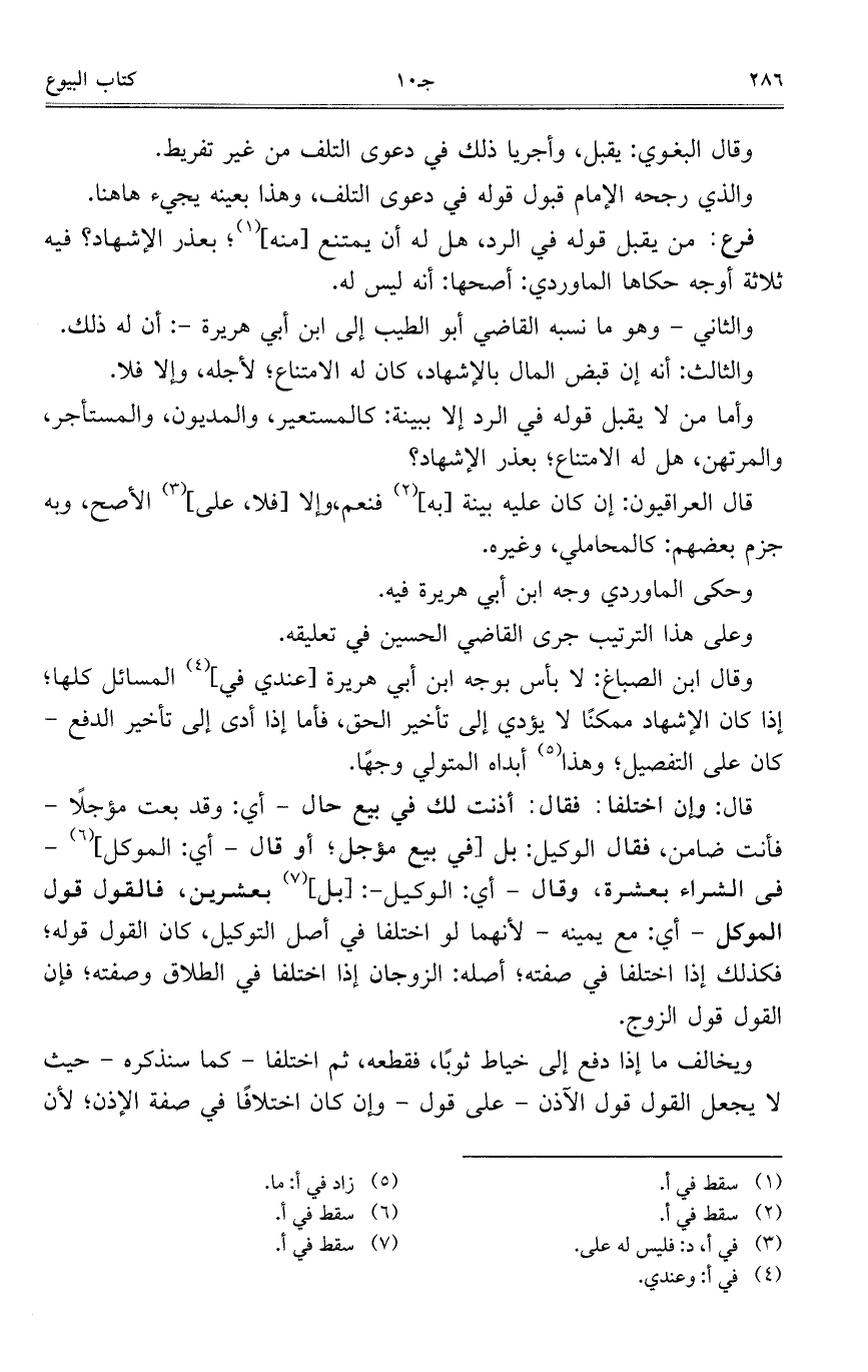 وقال البغوي: يقبل، وأجريا ذلك في دعوى التلف من غير تفريط.