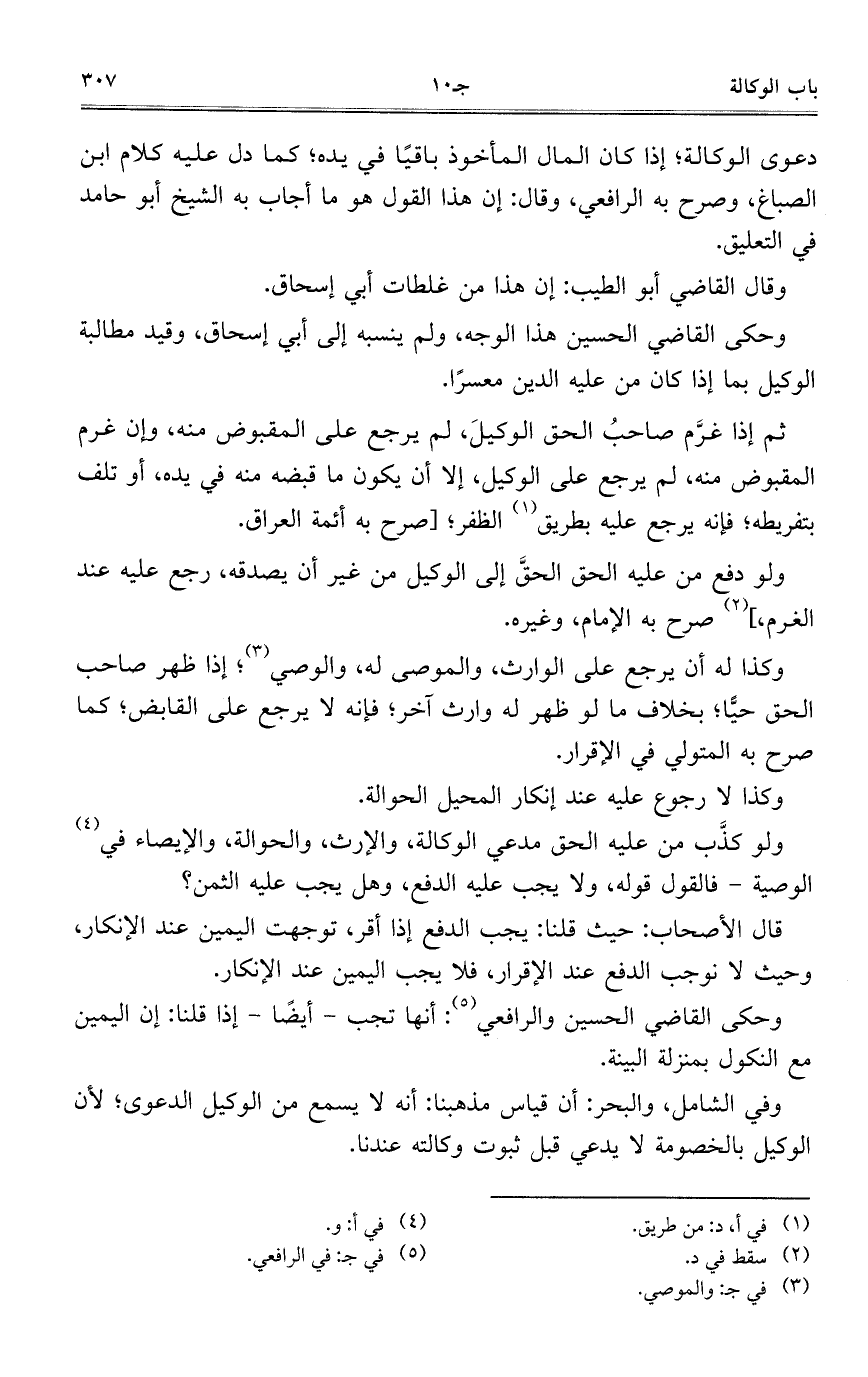 دعوى الوكالة؛ إذا كان المال المأخوذ باقياً في يده؛ كما دل عليه كلام ابن الصباغ، وصحر به الرافعي، وقال: إن هذا القول هو ما أجاب به الشيخ أبو حامد في التعليق.