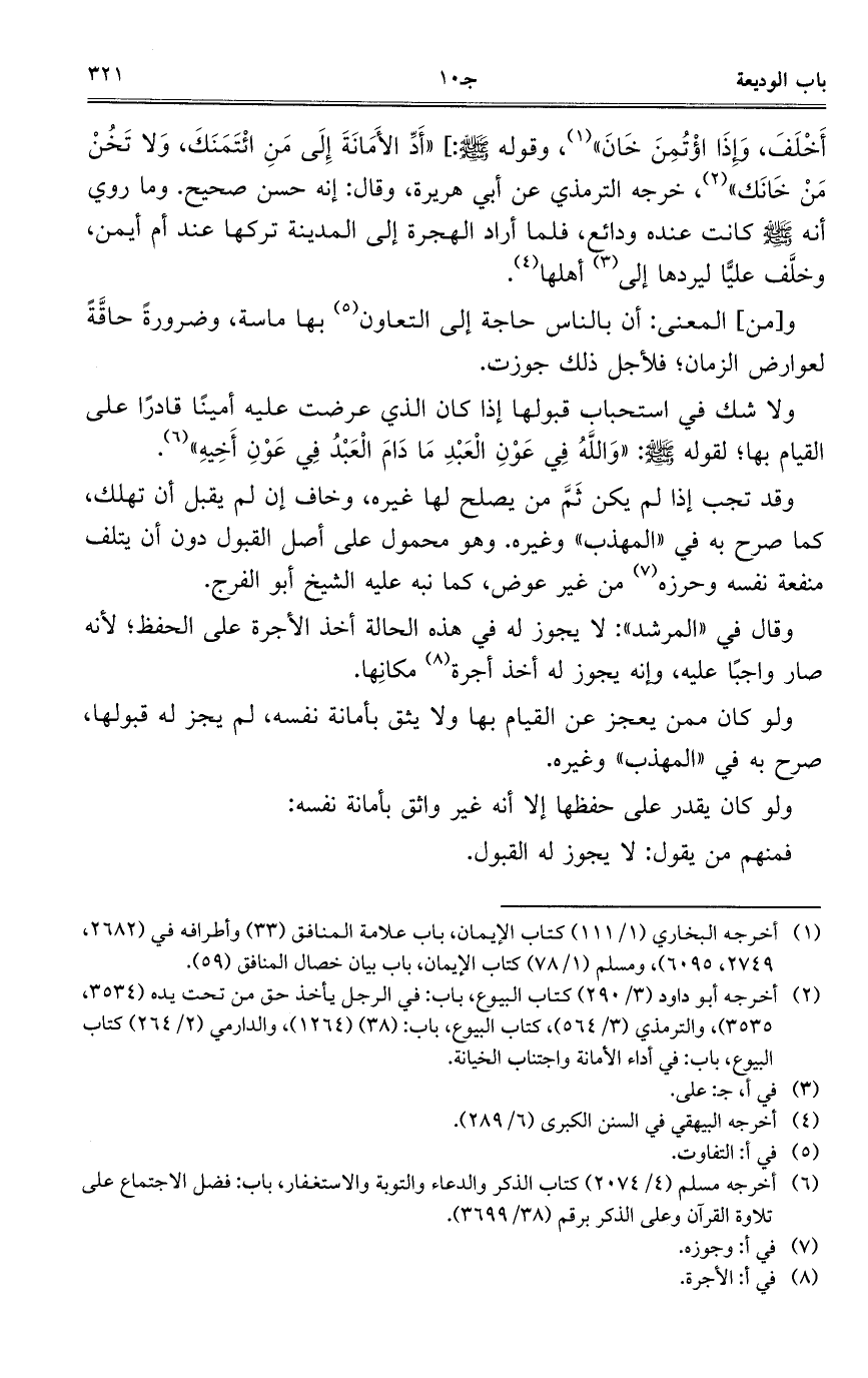 أَخْلَفَ، وَإِذَا اؤْتُمِنَ خَانَ"، وقوله صلى الله عليه وسلم:] "أَدِّ الأَمَانَةَ إِلَى مَنِ ائْتَمَنَكَ، وَلا تَخُنْ مَنْ خَانَك"، خرجه الترمذي عن أبي هريرة، وقال: إنه حسن صحيح. وما روي أنه صلى الله عليه وسلم كانت عنده ودائع، فلما أراد الهجرة إلى المدينة تركها عند أم أيمن، وخلَّف عليًّا ليردها إلى أهلها.
