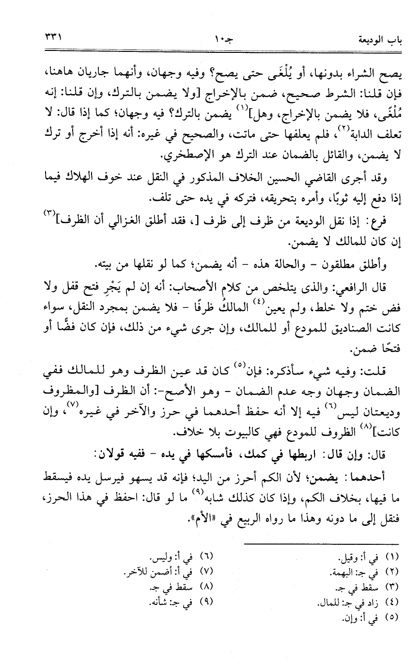 قلت: وفيه شيء سأذكره: فإن كان قد عين الظر وهو للمالك ففي الضمان وجهان وجه عدم الضمان – وهو الأصح-: أن الظرف [والمظروف وديعتان ليس فيه إلا أنه حفظ أحدهما في حرز والآخر في غيره، وإن كانت] الظروف للمودع فهي كالبيوت بلا خلاف.
