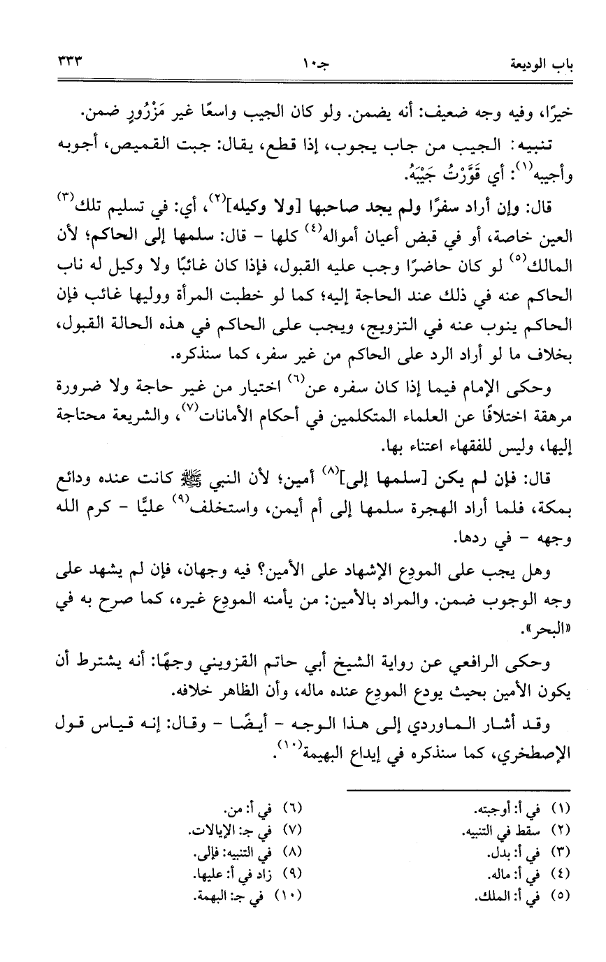 وحكى الإمام فيما إذا كان سفره عن اختيار من غير حاجة ولا ضرورة مرهقة اختلافاً عن العلماء المتكلمين في أحكام الأمانات، والشريعة محتاجة إليها، وليس للفقهاء اعتناء بها.
