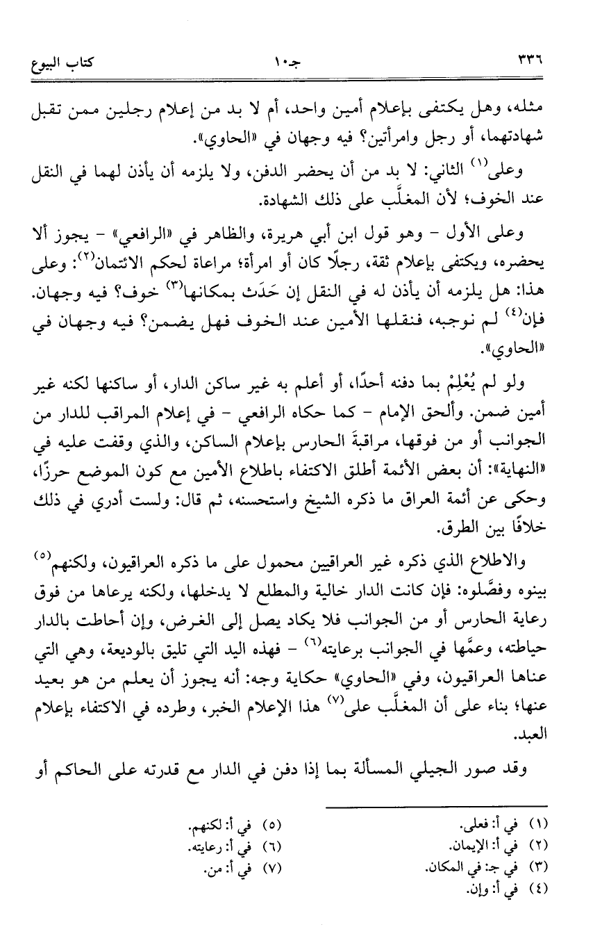 مثله، وهل يكتفي بإعلام أمين واحد، أم لابد من إعلام رجلين ممن تقبل شهادتهما، أو رجل وامرأتين؟ فيه وجهان في "الحاوي".