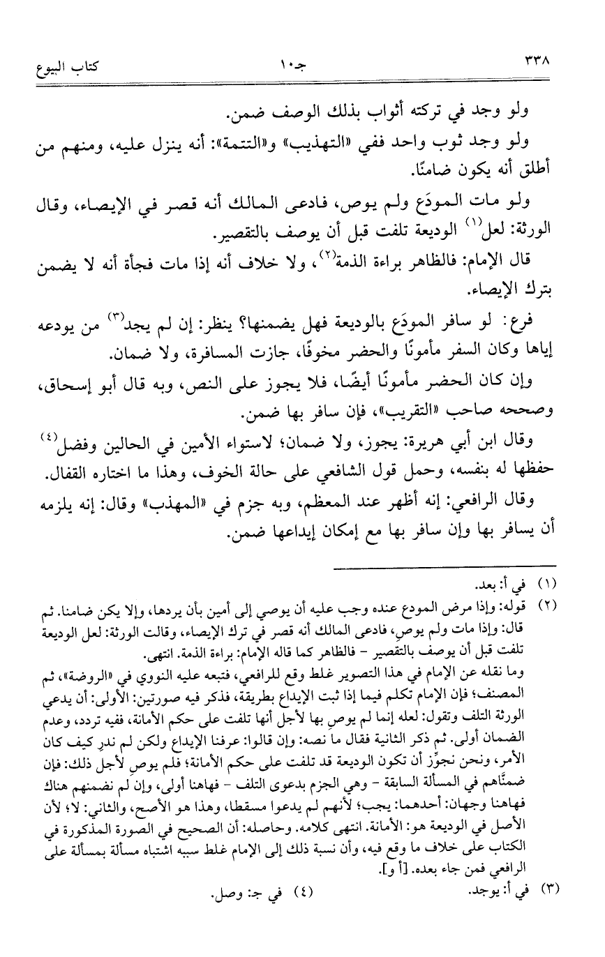 قال الإمام: فالظاهر براءة الذمة، ولا خلاف أنه إذا مات فجأة أنه لا يضمن بترك الإيصاء.