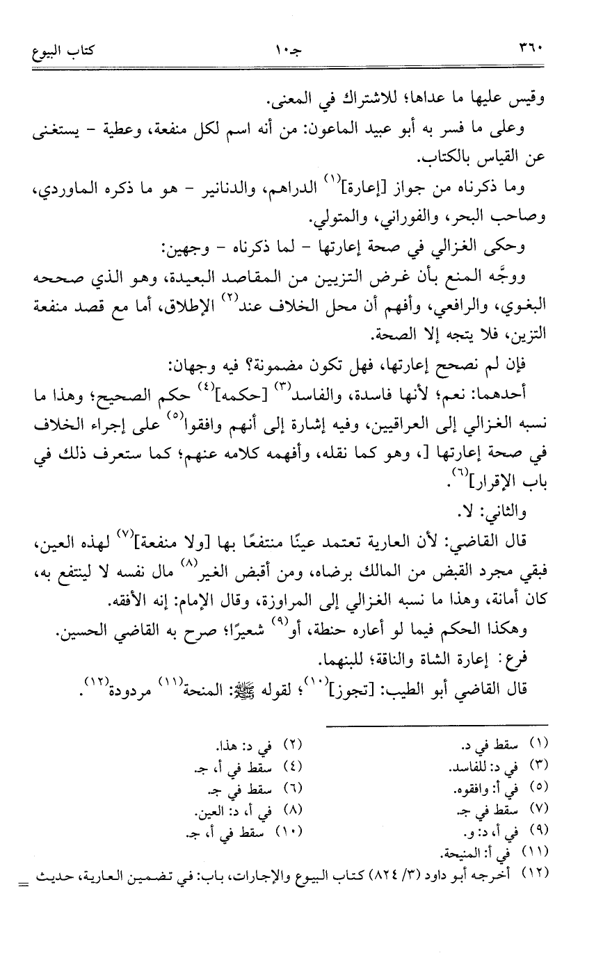 وما ذكرناه من جواز [إعارة] الدراهم، والدنانير – هو ما ذكره الماوردي، وصاحب البحر، والفوراني، والمتولي.