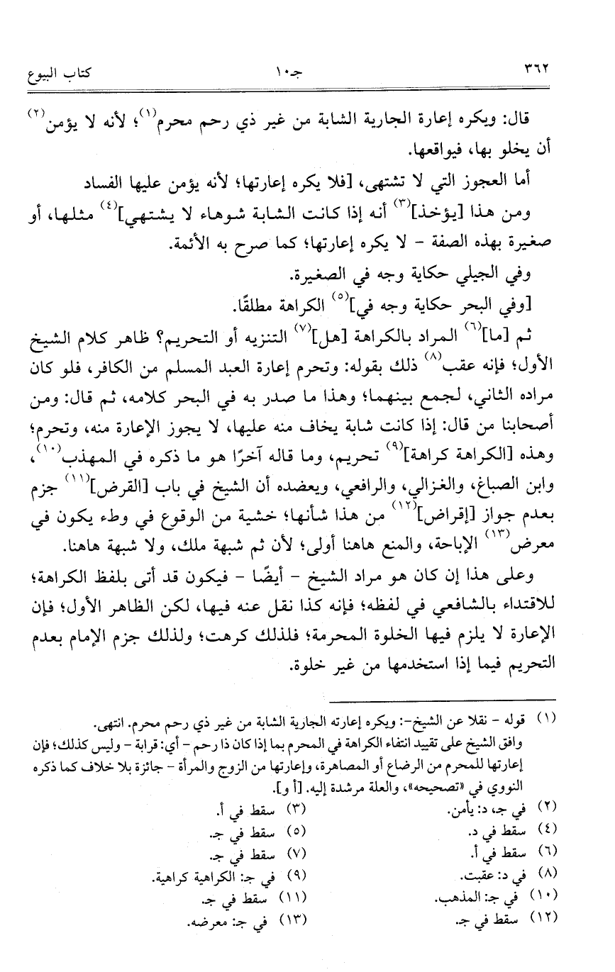 وعلى هذا إن كان هو مراد الشيخ – أيضاً – فيكون قد أتى بلفظ الكراهة؛ للاقتداء بالشافعي في لفظه؛ فإنه كذا نقل عنه فيها، لكن الظاهر الأول؛ فإن الإعارة لا يلزم فيها الخلوة المحرمة؛ فلذلك كرهت؛ ولذلك جزم الإمام بعدم التحريم فيما إذا استخدمها من غير خلوة.