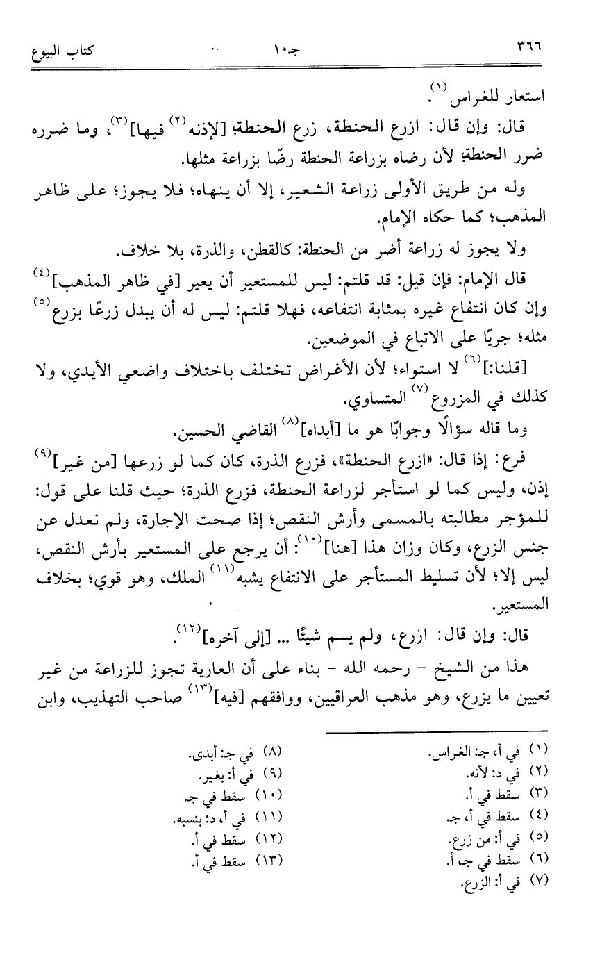 هذا من الشيخ – رحمه الله – بناء على أن العارية تجوز للزراعة من غير تعيين ما يزرع، وهو مذهب العراقيين، وواقهم [فيه] صاحب التهذيب، وابن
