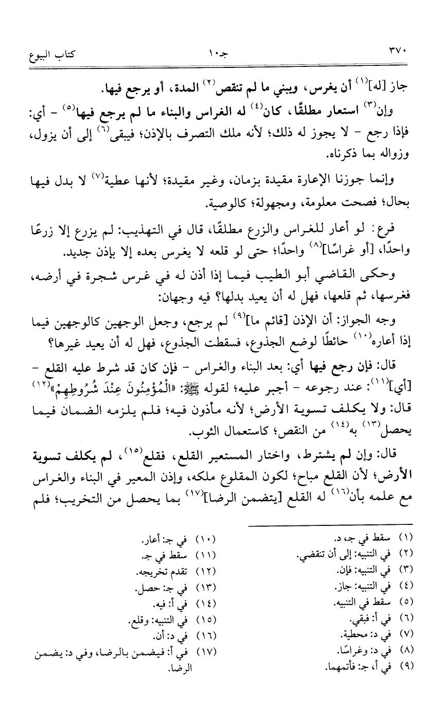 قال: فإن رجع فيها أي: بعد البناء والغراس- فإن كان قد شرط عليه القلع – [أي]: عند رجوعه – أجبر عليه؛ لقوله صلى الله عليه وسلم:"الْمُؤْمِنُونَ عِنْدَ شُرُوطِهِمْ"