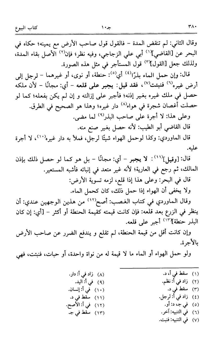 قال: وإن حمل الماء بذراً أي: حنطة، أو نوى، أو غيرهما – لرجل إلى أرض غيره فنبتت، فقد قيل: يجبر على قلعه –أي: مجاناً – لأن ملكه حصل في ملك غيره بغير إذنه؛ فأجبر على إزالته وإن لم يكن بفعله؛ كما لو حصلت أغصان شجرة في هواء دار غيره؛ وهذا هو الصحيح في الطرق.