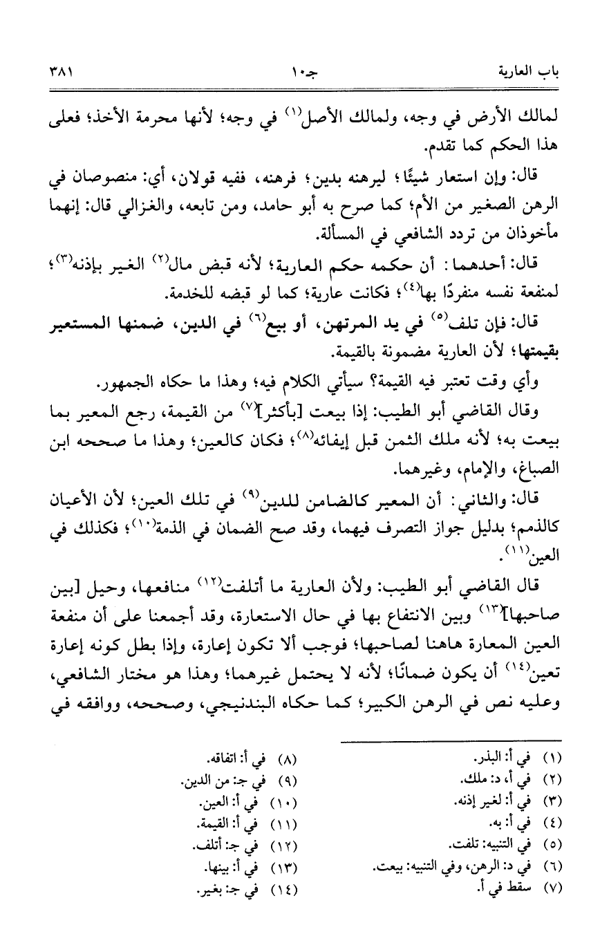 قال: والثاني: أن المعير كالضامن للدين في تلك العين؛ لأن الأعيان كالذمم؛ بدليل جواز التصرف فيهما، وقد صح الضمان في الذمة؛ فكذلك في العين.