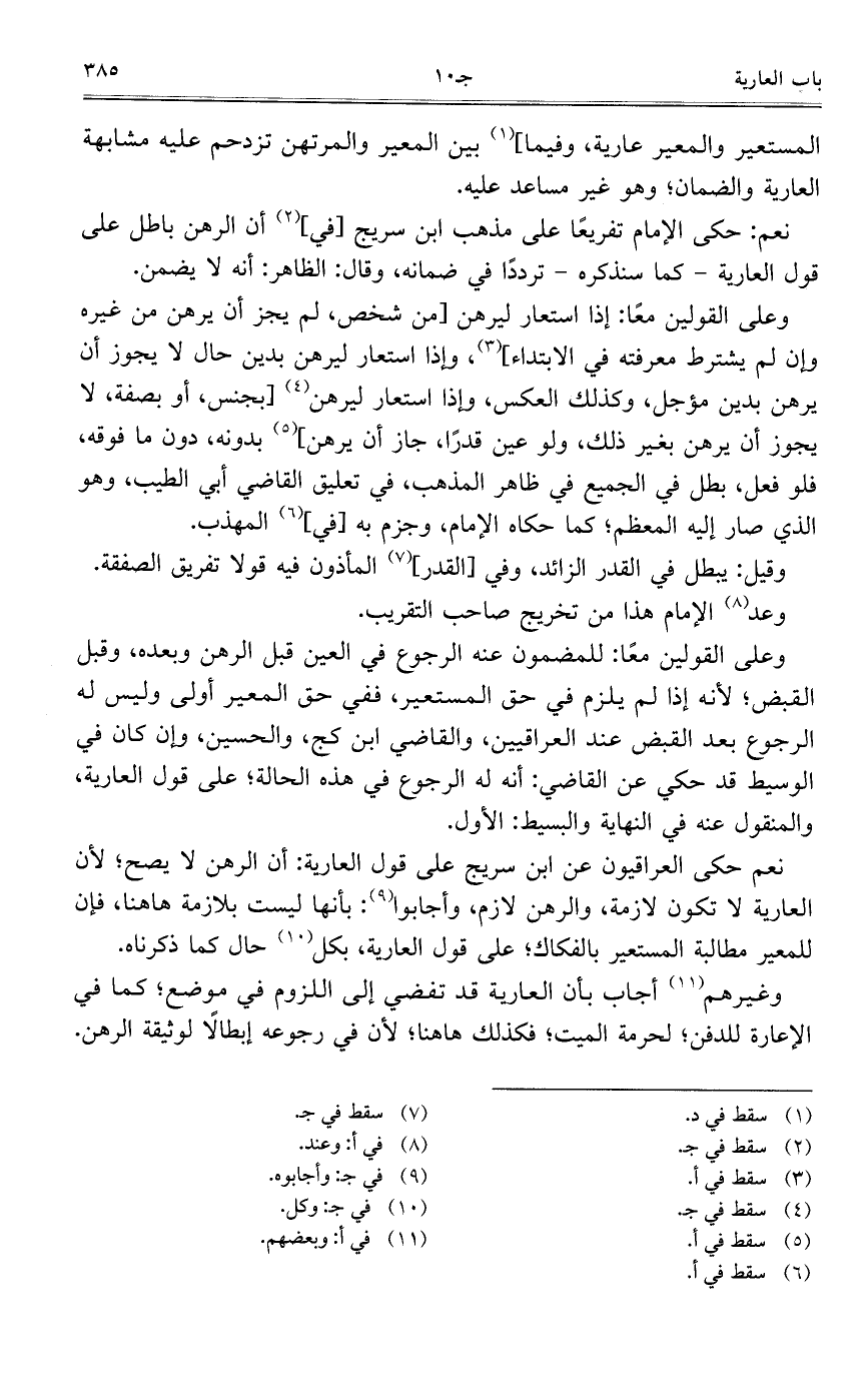 المستعير والمعير عارية، وفيما] بين المعير والمرتهن تزدحم عليه مشابهة العارية والضامن؛ وهو غير مساعد عليه.