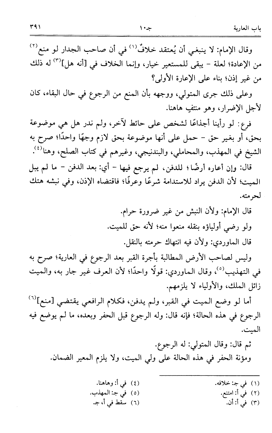 وقال الإمام: لا ينبغي أن يُعتقد خلافٌ في أن صاحب الجدار لو منع من الإعادة؛ لعلة – يبقى للمستعير خيار، وإنما الخلاف في [أنه هل] له ذلك من غير إذن؛ بناء على الإعارة الأولى؟