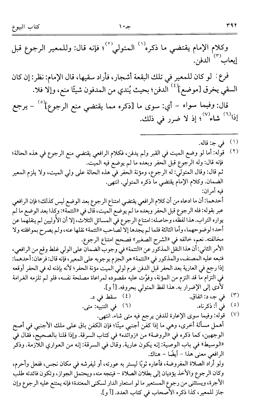 وكلام الإمام يقتضي ما ذكره المتولي؛ فإنه قال: وللمعير الرجوع قبل إيعاب الدفن.