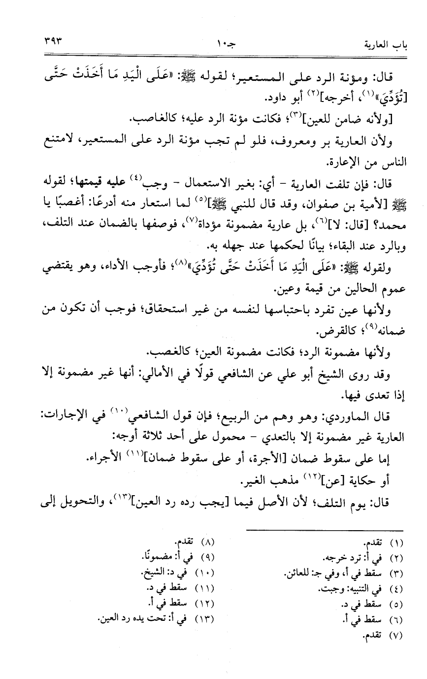 قال: ومؤنة الرد على المستعير؛ لقوله صلى الله عليه وسلم: "عَلَى الْيَدِ مَا أَخَذَتْ حَتَّى [تُؤَدِّيَ"، أخرجه] أبو داود.