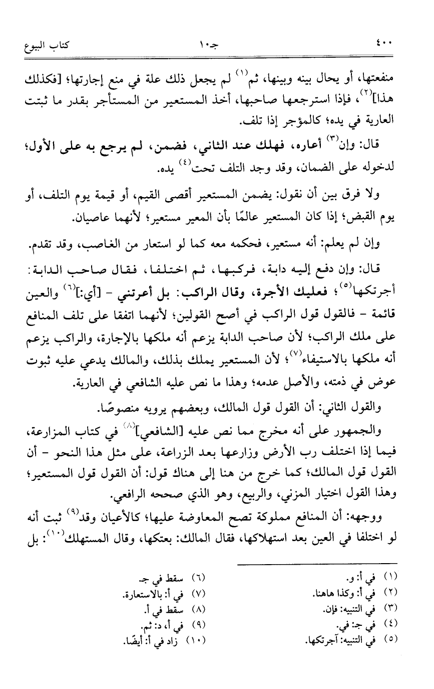 والجمهور على أنه مخرج مما نص عليه [الشافعي] في كتاب المزارعة، فيما إذا اختلف رب الأرض وزارعها بعد الزراعة، على مثل هذا النحو – أن القول قول المالك؛ كما خرج من هنا إلى هناك قول: أن القول قول المستعير؛ وهذا القول اختيار المزني، والربيع، وهو الذي صححه الرافعي.