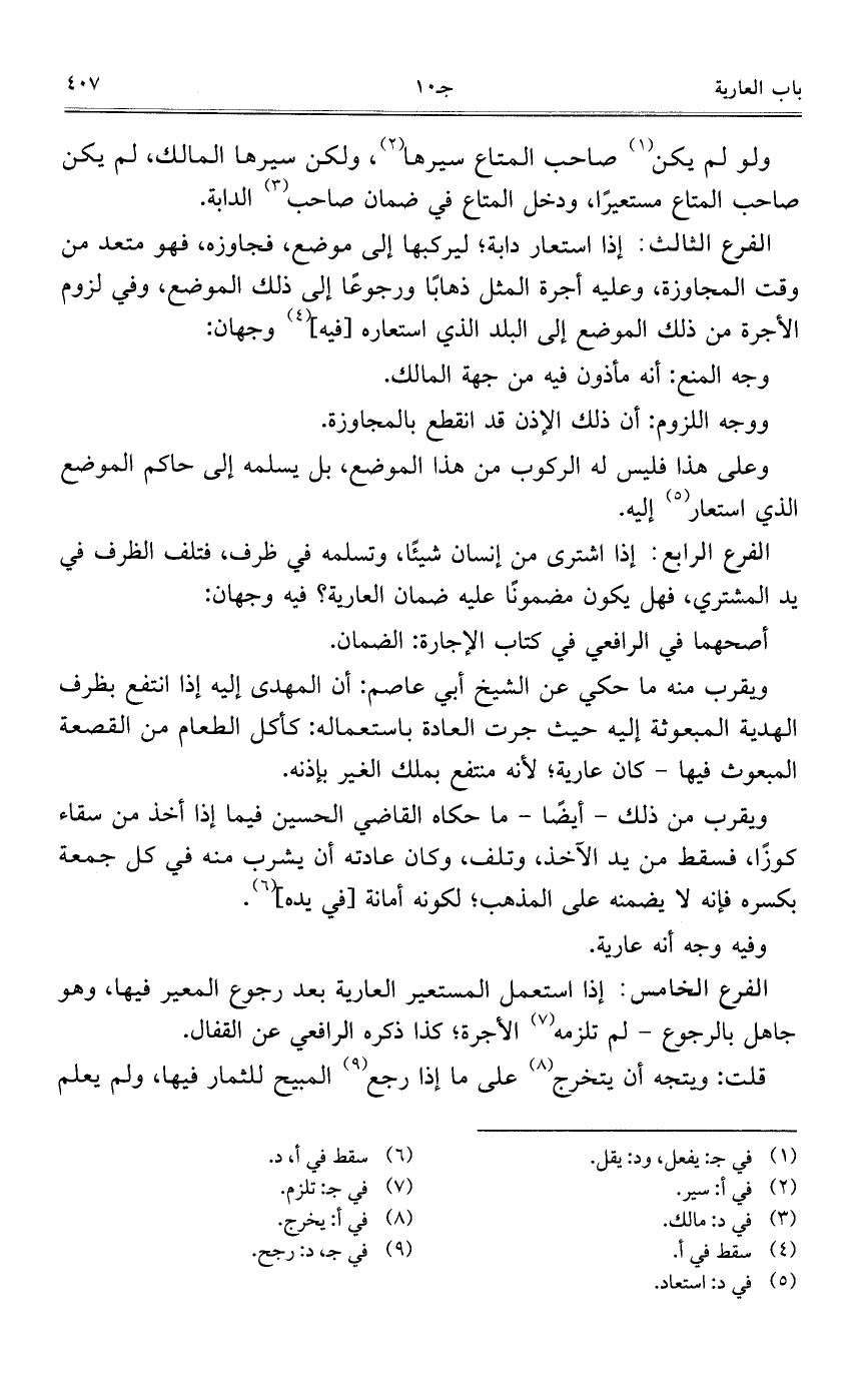 الفرع الخامس: إذا استعمل المستعير العارية بعد رجوع المعير فيها، وهو جاهل بالرجوع – لم تلزمه الأجرة؛ كذا ذكره الرافعي عن القفال.