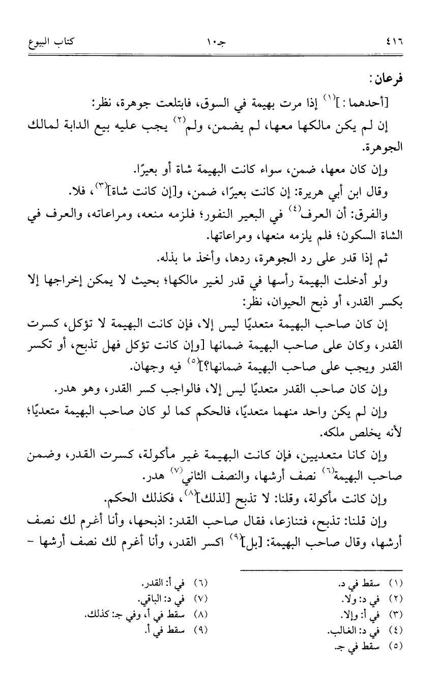 [أحدهما:] إذا مرت بهيمة في السوق، فابتلعت جوهرة، نظر: