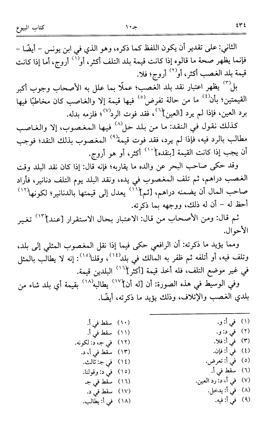 الثاني: على تقدير أن يكون اللفظ كما ذكره، وهو الذي في ابن يونس - أيضاً - فإنما يظهر صحة ما قالوه إذا كانت قيمة بلد التلف أكثر، أو أروج، أما إذا كانت قيمة بلد الغصب أكثر، أو أروج؛ فلا.