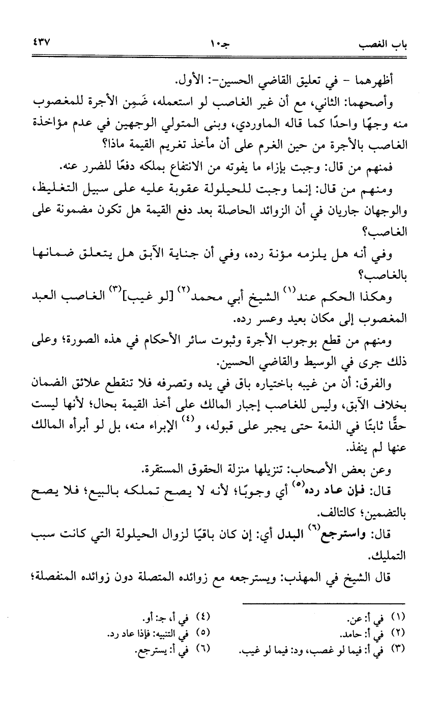 وأصحهما: الثاني، مع أن غير الغاصب لو استعمله، ضَمِن الأجرة للمغصوب منه وجهاً واحداً كما قاله الماوردي، وبنى المتولي الوجهين في عدم مؤاخذة الغاصب بالأجرة من حين الغرم على أن مأخذ تغريم القيمة ماذا؟
