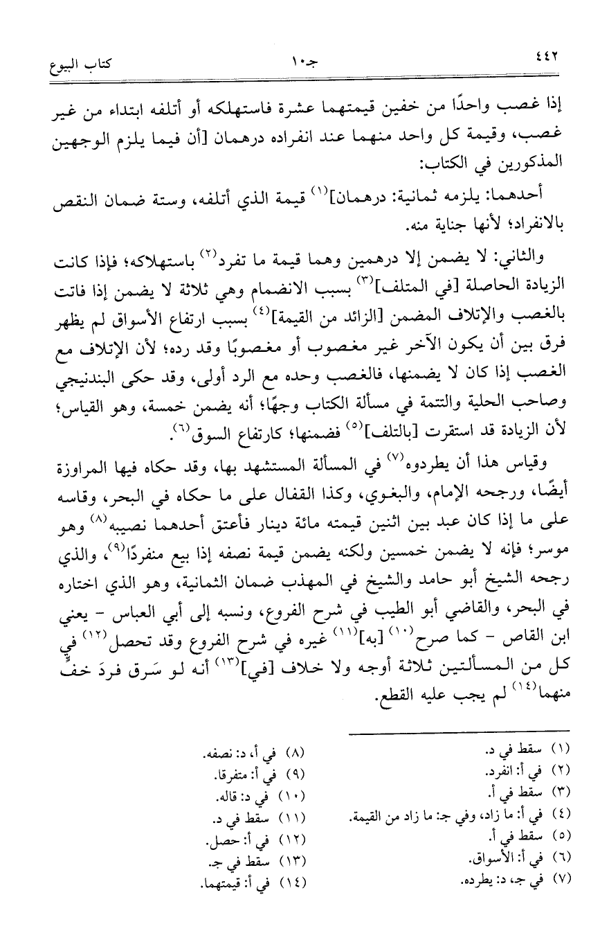 إذا غصب واحداً من خفين قيمتهما عشرة فاستهلكه أو أتلفه ابتداء من غير غصبن وقيمة كل واحد منهما عند انفراده درهمان [أن فيما يلزم الوجهين المذكورين في الكتاب: