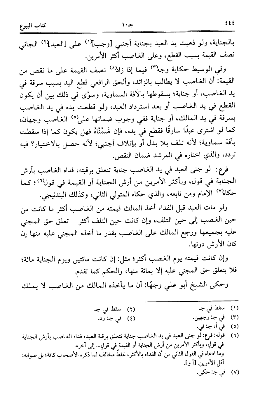 وفي الوسيط حكاية وجه فيما إذا زاد نصف القيمة على ما نقص من القيمة: أن الغاصب لا يطالب بالزائد، وألحق الرافعي قطع اليد بسبب سرقة في يد الغاصب، أو جناية؛ بسقوطها بالآفة السماوية، وسوَّى في ذلك بين أن يكونا القطع في يد الغاصب أو بعد استرداد العبد، ولو قطعت يده في يد الغاصب بسرقة في يد المالك، أو جناية ففي وجوب ضمانها على الغاصب وجهان، كما لو اشترى عبداً سارقاً فقطع في يده، فإن ضَمَّنَّاهُ فهل يكون كما إذا سقطت بآفة سماوية؛ لأنه تلف بلا بدل أو بإتلاف أجنبي؛ لأنه حصل بالاختيار؟ فيه تردد، والذي اختاره في المرشد ضمان النقص.