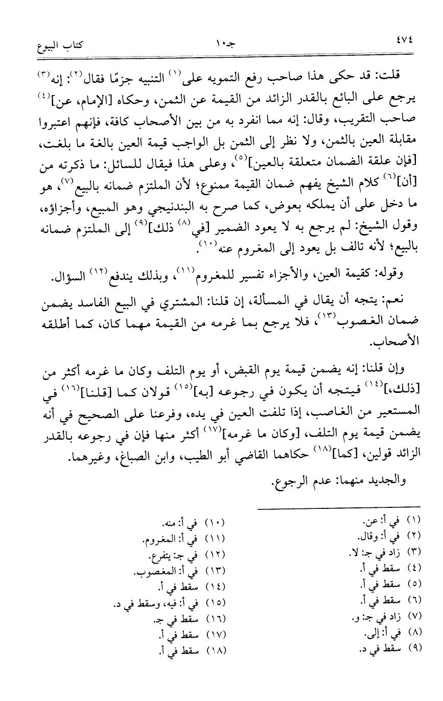 قلت: قد حكى هذا صاحب رفع التمويه على التنبيه جزماً فقال: إنه يرجع على البائع بالقدر الزائد من القيمة عن الثمنن وحكاه [الإمام، عن] صاحب التقريب، وقال: إنه مما انفرد به من بين الأصحاب كافة، فإنهم اعتبروا مقابلة العين بالثمن، ولانظر إلى الثمن بل الواجب قيمة العين بالغة ما بلغت، [فإن علقة الضمان متعلقة بالعين]، وعلى هذا فيقال للسائل: ما ذكرته من [أن] كلام الشيخ يفهم ضمان القيمة ممنوع؛ لأن الملتزم ضمانه بالبيع، هو ما دخل على أن يملكه بعوض، كما صرح به البندنيجي وهو المبيع، هو ما دخل على أن يملكه بعوض، كما صرح به البندنيجي وهو المبيع، وأجزاؤه، وقول الشيخ: لم يرجع به لا يعود الضمير [في ذلك] إلى الملتزم ضمانه بالبيع؛ لأنه تالف بل يعود إلى المغروم عنه.