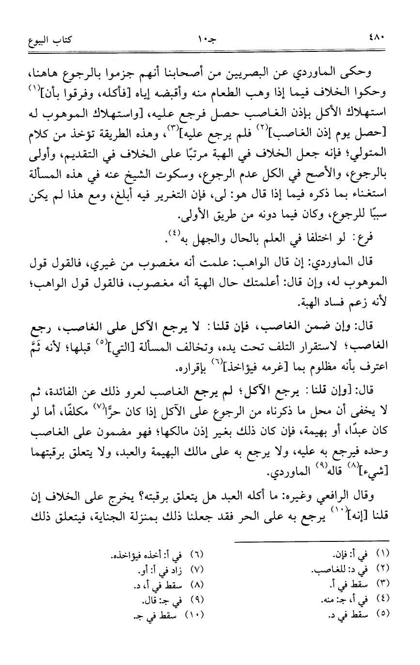 قال الماوردي: إن قال الواهب: علمت أنه مغصوب من غيري، فالقول قول الموهوب له، وإن قال: أعلمتك حال الهبة أنه مغصوب، فالقول قول الواهب؛ لأنه زعم فساد الهبة.