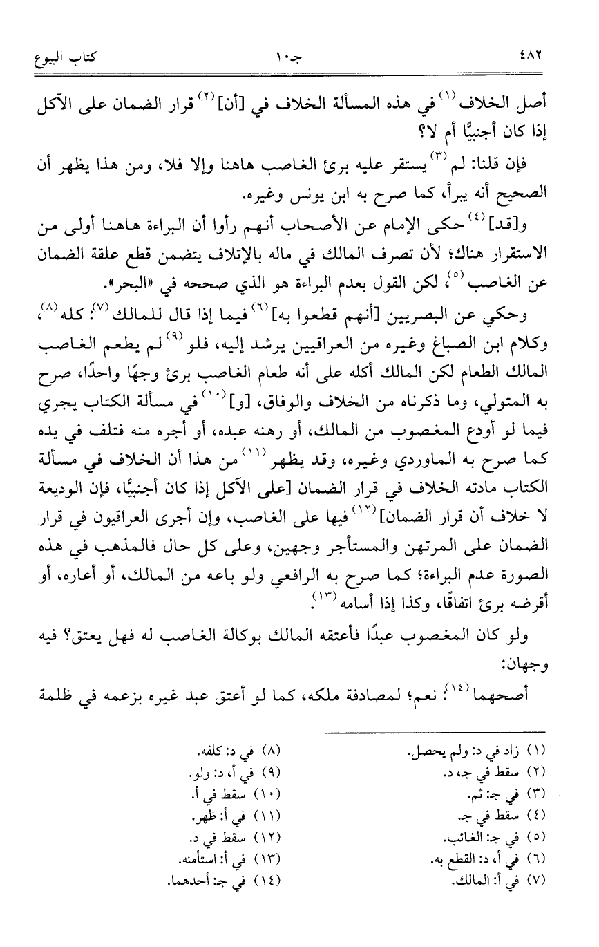 أصل الخلاف في هذه المسألة الخلاف في [أن] قرار الضمان على الآكل إذا كان أجنبياً أم لا؟