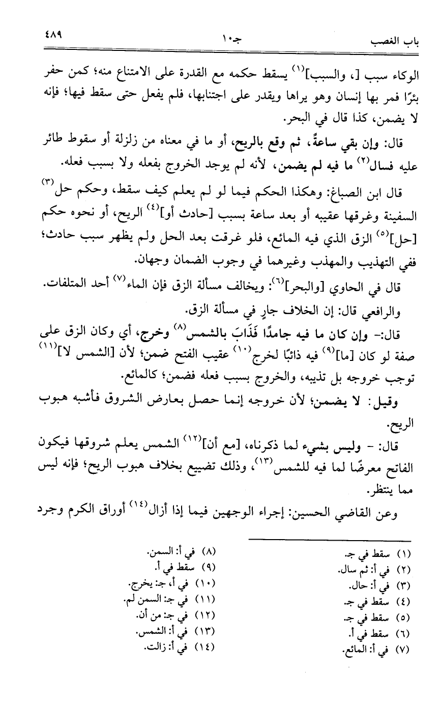 قال في الحاوي [والبحر]: ويخالف مسألة الزق فإن الماء أحد المتلفات.