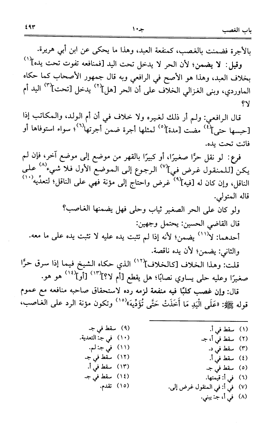 بالأجرة فضنت بالغصب، كمنفعة العبد، وهذا ما يحكي عن ابن أبي هريرة.