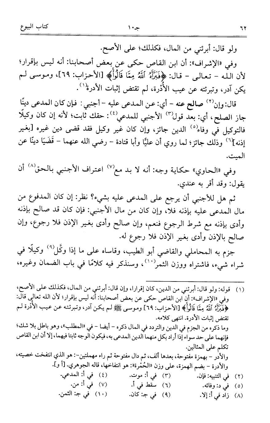 وفي "الإشراف": أن ابن القاص حكى عن بعض أصحابنا: أنه ليس بإقرار؛ لأن الله – تعالى – قال: {فَبَرَّأَهُ اللَّهُ مِمَّا قَالُوا} [الأحزاب: 69]، وموسى لم يكن آدر، وتبرئته عن عيب الأُدْرة، لم تقتض إثبات الأدرة.